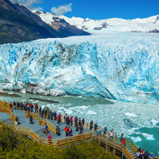 Viajarás cerca de 5 horas para finalmente llegar a El Calafate. En este lugar se incorpora al tour un guía bilingüe, luego de un lapso de una hora más menos llegaremos al glaciar más grande de Sudamérica, El Perito Moreno. El guía explicará con detalles la visita que durará aproximadamente 2 horas, donde se recorrerá el lugar desde los miradores que integran las modernas pasarelas y en donde será posible realizar una navegación opcional de acercamiento a la pared frontal del glaciar Perito Moreno. Horario de regreso: aproximadamente 21:30 P.M